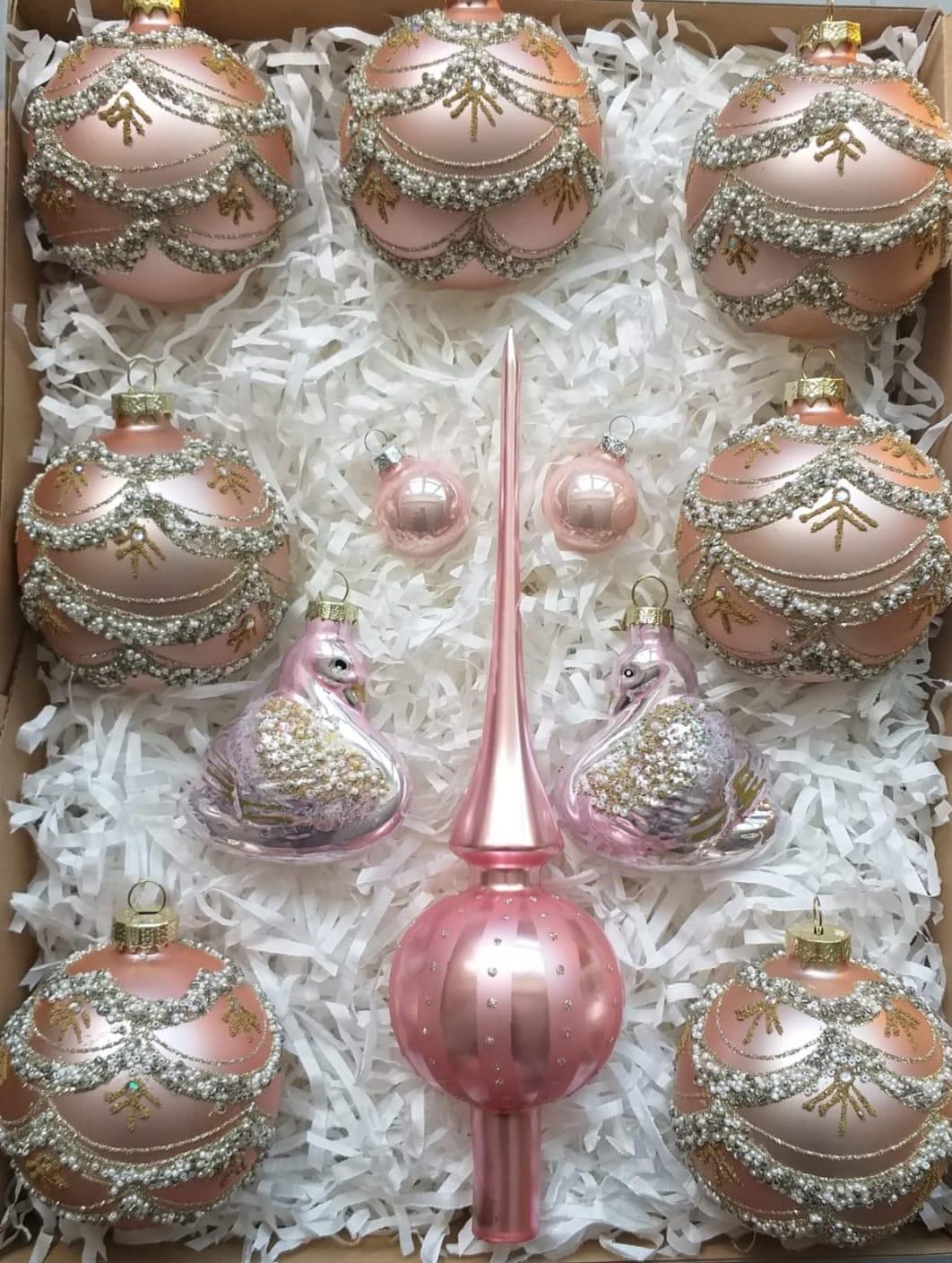 Jedinečná růžová vánoční kolekce ozdob, která rozzáří Váš stromeček. Tato limitovaná sada vánočních ozdob je nejen stylovou a elegantní výzdobou pro váš vánoční strom, ale také rozzáří Váš stromeček. Každá ozdoba je unikátní a ručně vyrobena s láskou k detailům. Dopřejte si tento unikátní set ozdob a nechte se unést do světa magie vánočních svátků.